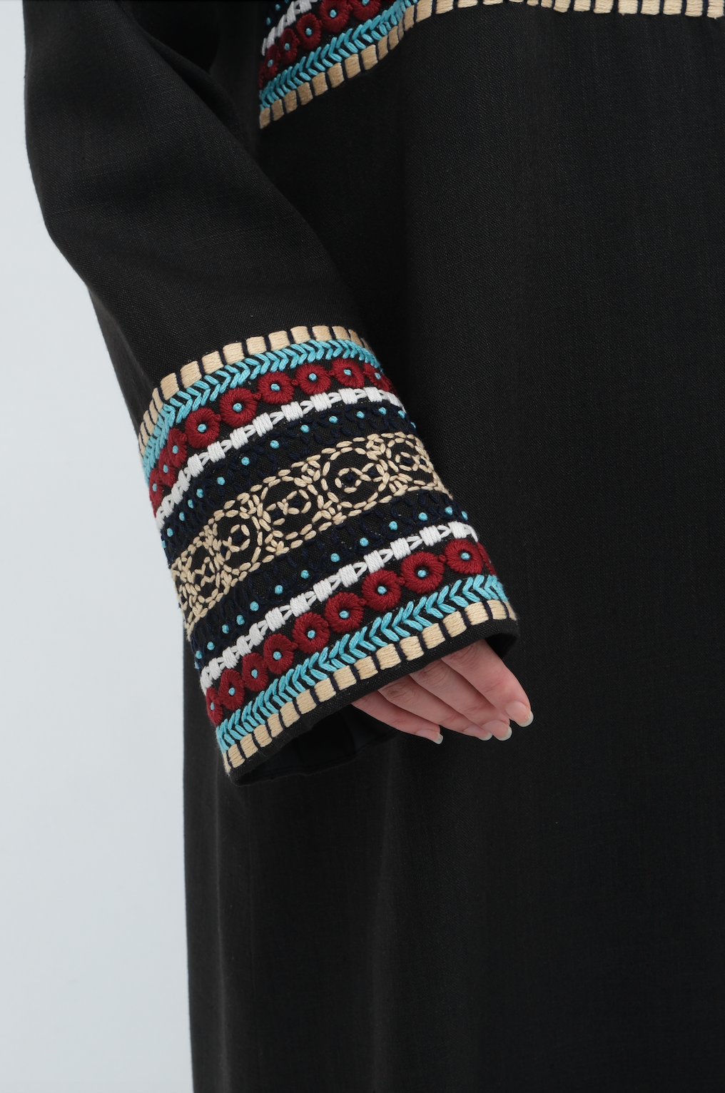 A piece that speaks in detail, Ivy is crafted from premium linen and elevated with exquisite hand embroidery across the front and sleeves. The intricate work is thoughtfully placed, showcasing artisanal precision that adds depth and cultural richness to the clean silhouette.