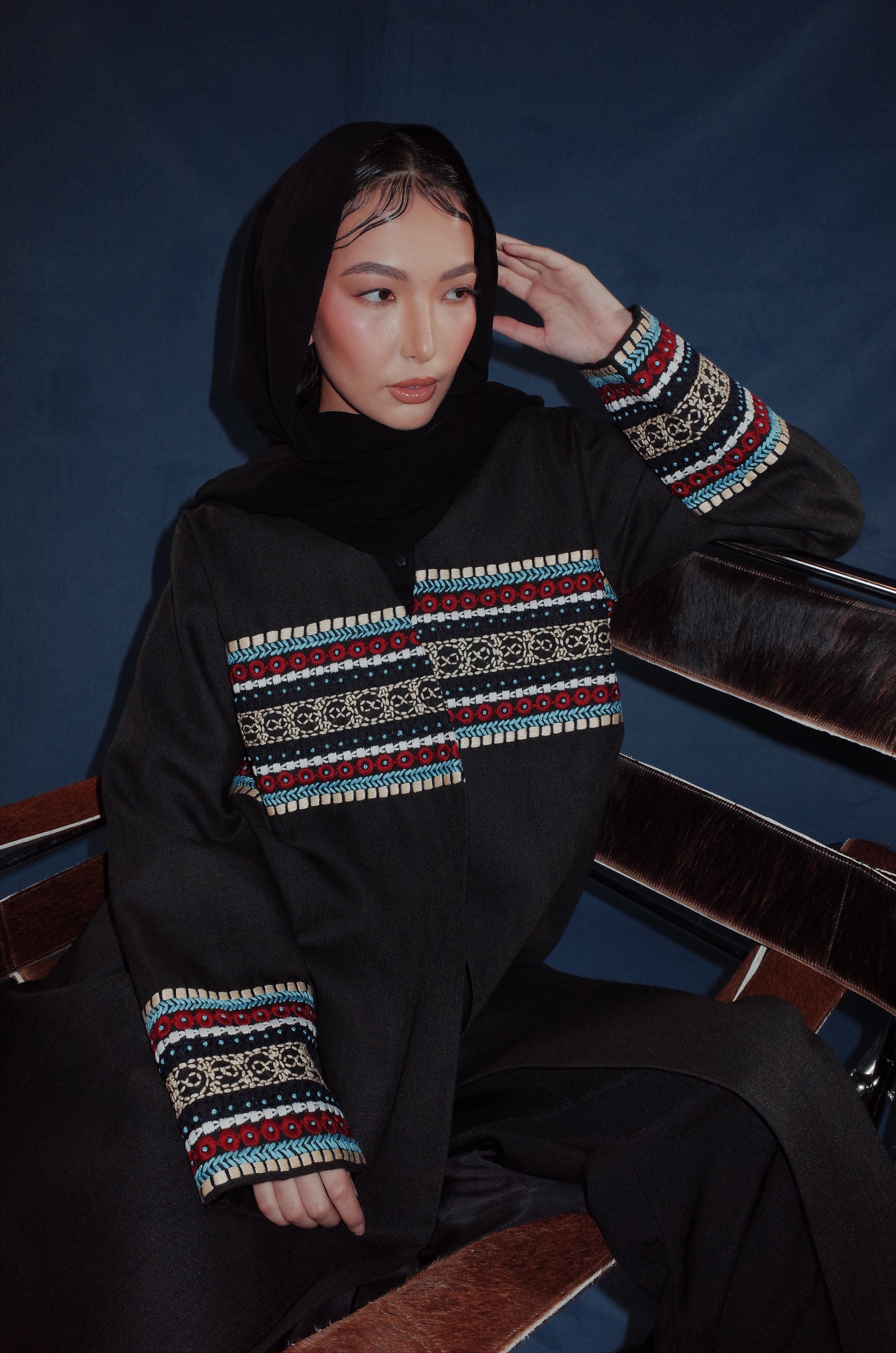 Designed for ease and elegance, Ivy offers a structured yet breathable fit, making it ideal for refined everyday wear or more elevated occasions. The embroidery on the sleeves brings a delicate balance of craftsmanship and femininity—quietly bold, and undeniably beautiful.