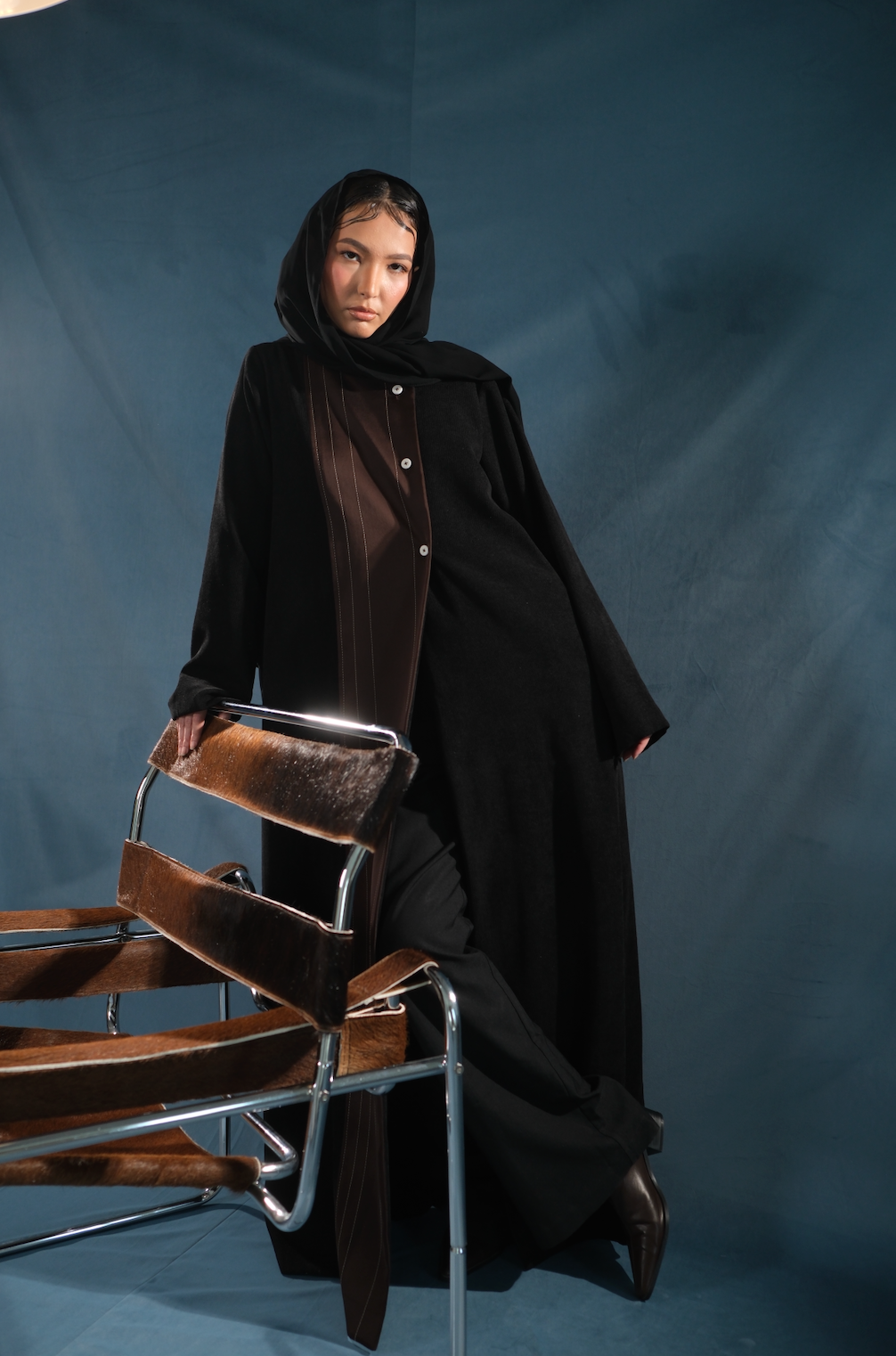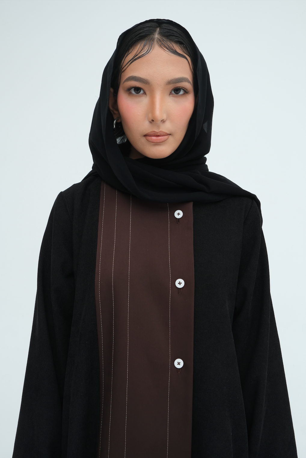 Three simple buttons enclose the piece, adding a functional element that blends seamlessly into the design. Nari is made for those who appreciate subtle complexity—where fabric, form, and function come together in perfect balance.