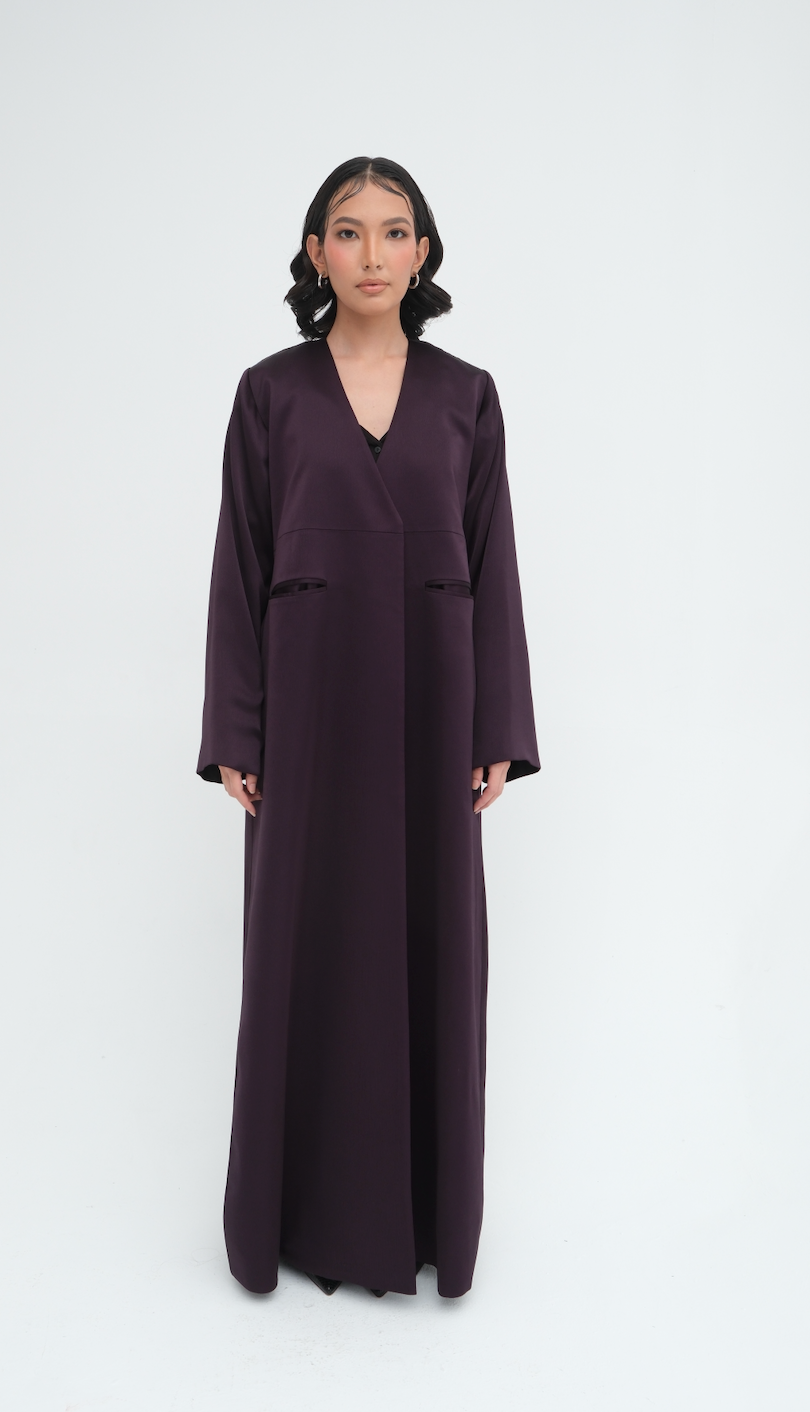 Bold in form yet minimal in essence, Miraya stands out with its clean angular front cut—an unexpected twist that adds modern edge to a timeless silhouette. The structured fabric drapes with purpose, creating a refined flow that flatters while remaining effortless.